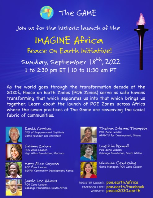 High Atlas Foundation (HAF) is piloting a new project called IMAGINE Peace On Earth by 2030 or POE Zone for short, in partnership with the Empowerment Institute, New York. The main goal for HAF is to Empower Morocco’s NGOs, faith-based groups, and businesses, among others, to lead Reweaving the Social Fabric Cafés, invite their members to play the game and establish POE Zones in communities nationwide.